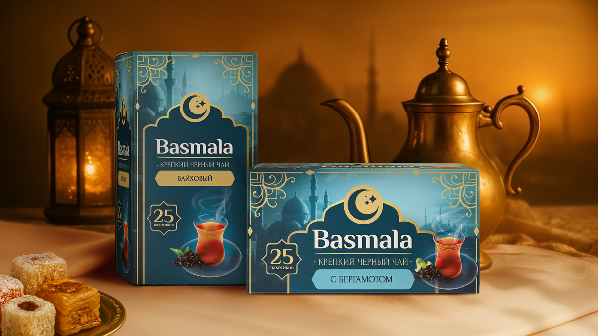 Фоном для упаковки чая стал образ восточного города с мечетью, объединенный с фирменной графикой. Такое решение позволило отразить «боль» аудитории — ностальгию по родине — и создать атмосферу тепла и уюта.
