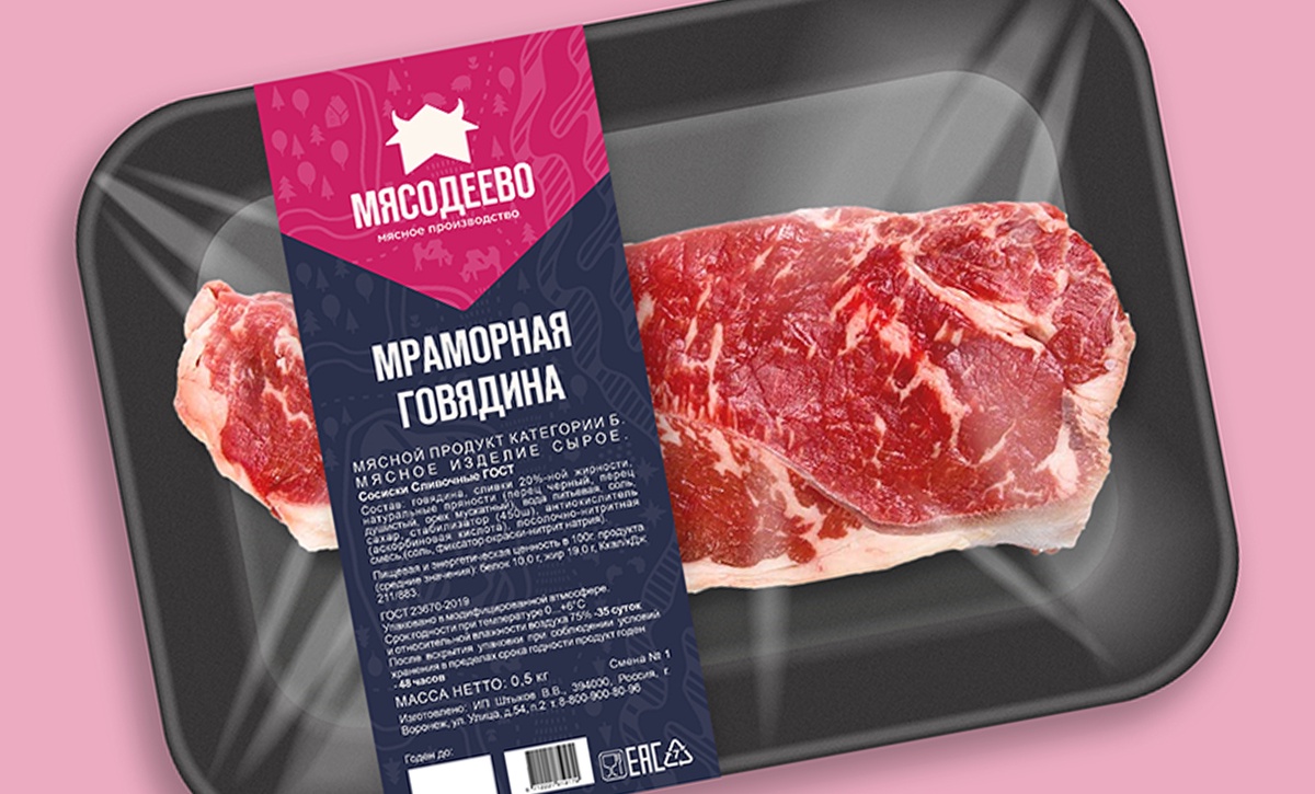 В основе концепции — фантазийная мясная деревенька, в которой живут потомственные животноводы и мясники. На собственных полях они пасут коровок, разводят поросят и кур. И потом из свежего натурального мяса готовят вкусные колбасы и прочие мясные деликатесы. МЯСОДЕЕВО — так мы назвали эту деревеньку. Тематический топоним оказался отличным вариантом как для названия самого производства, так и для СТМ массового спроса: он чётко указывает на категорию продукта, он благозвучен, легко считывается и запоминается, а также имеет большой потенциал для дальнейшего развития мира бренда.Чтобы потребителю было проще соотнести фантазийное название с реальным производством и его продукцией, мы нарисовали карту деревенской местности и активно использовали её в качестве паттерна на различных носителях: этикетки, транспорт, форма продавцов и проч. Решая задачу заметности продукта, его отстройки от многочисленных конкурентов, основными фирменными цветами мы назначили контрастную пару: яркий малиновый и строгий синий.