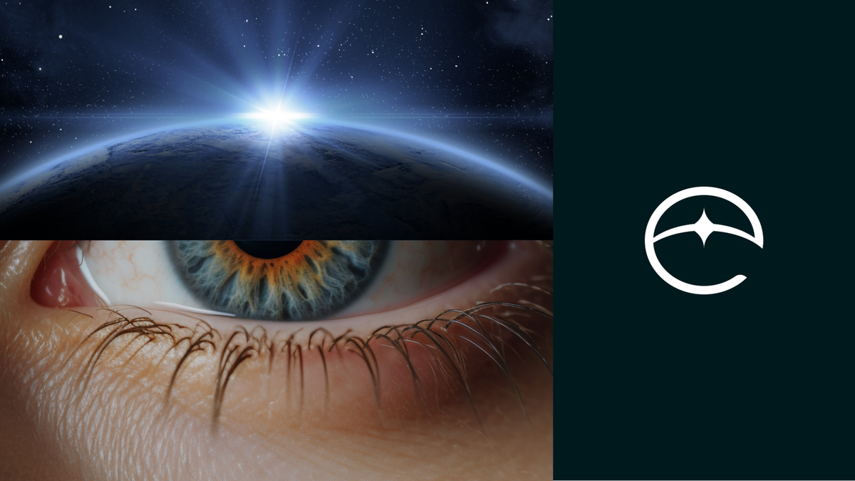 Взгляд и веки — очевидная, но стратегически важная ассоциация — была реализована за счет дуг век. Предложенный фирменный элемент напоминает одновременно и дугу века, и космическую орбиту с акцентным сиянием.